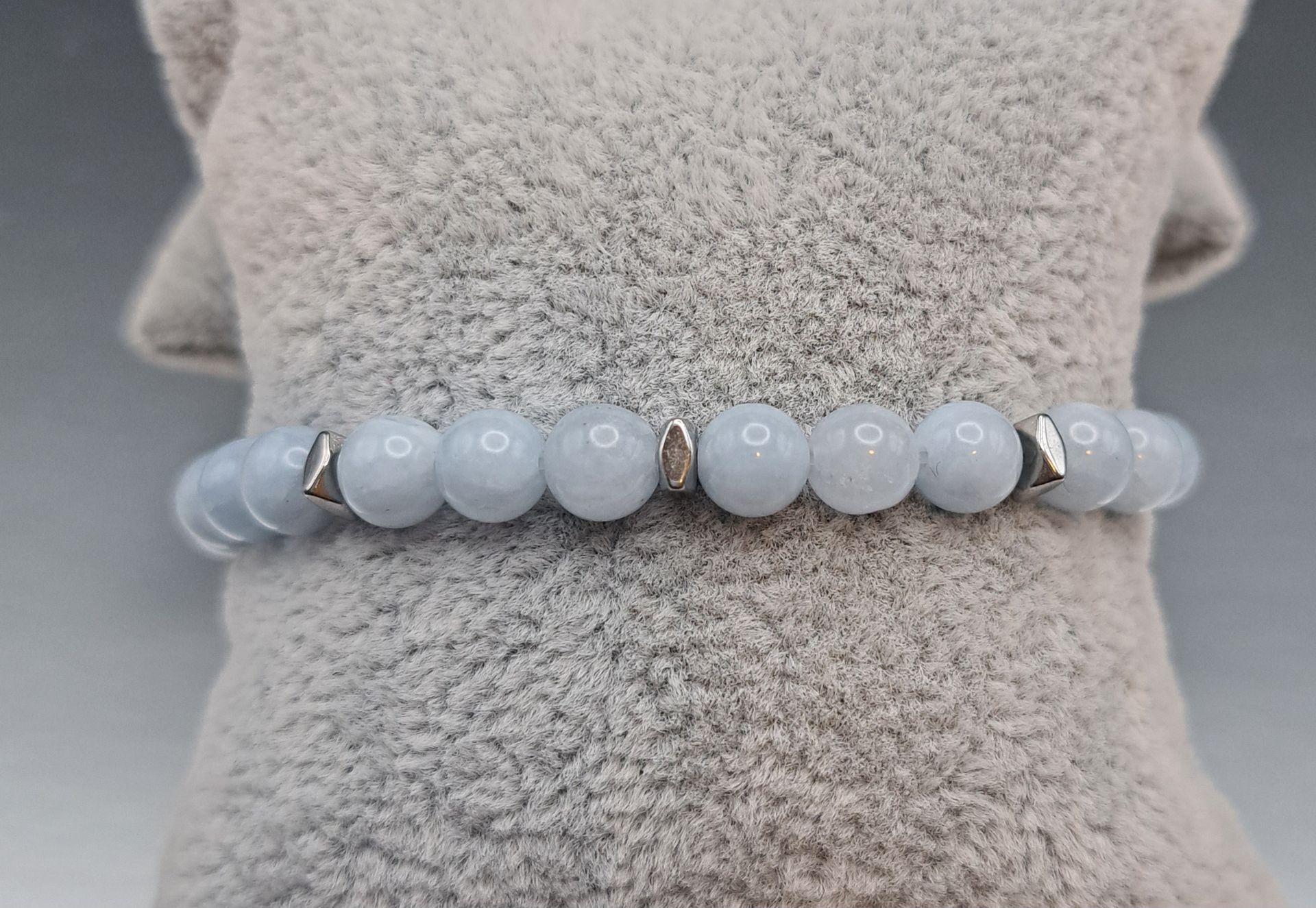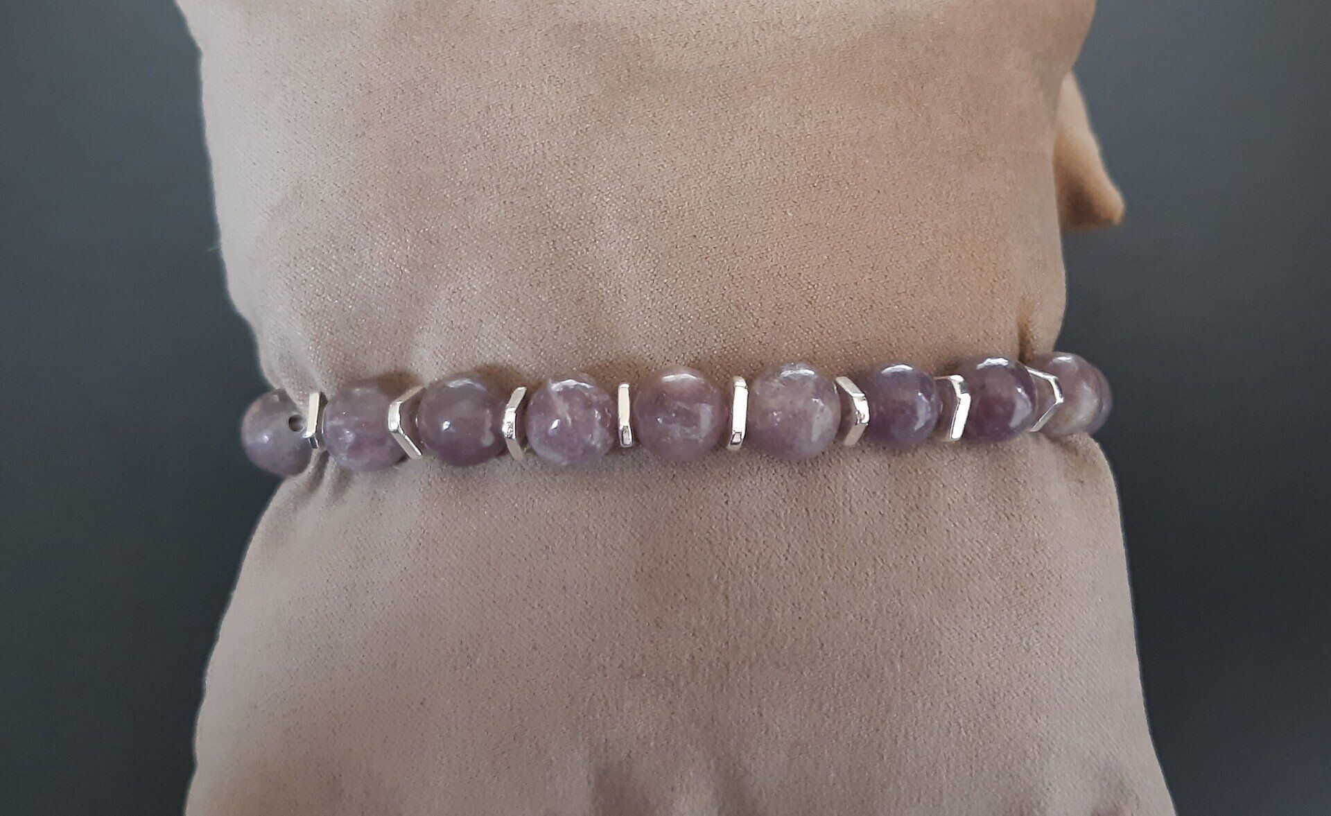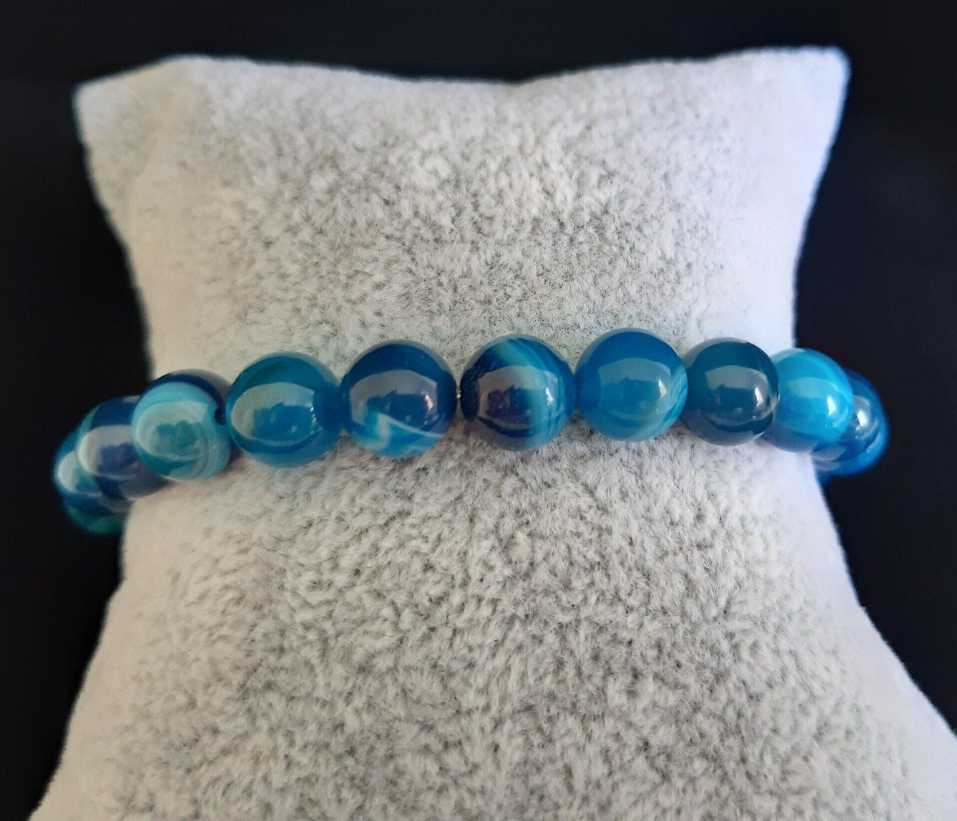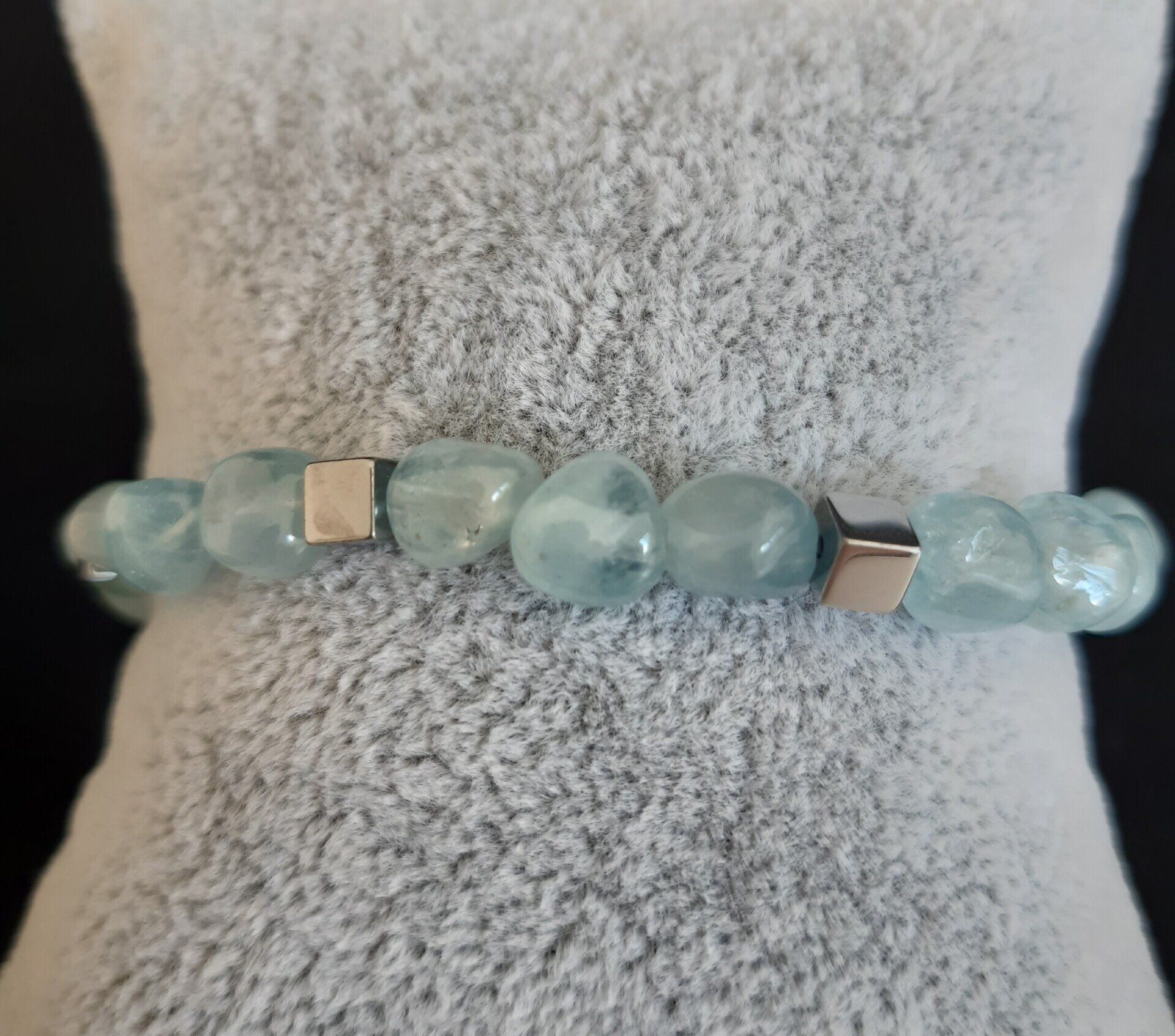 werden zumeist auf elastischem Gummiband aufgezogen, da reguläre Kettenverschlüsse mit einer Hand schwer zu öffnen und zu schließen sind. Das elastische Gummiband leiert kaum aus, sofern man es pfleglich behandelt. Armbänder können aber auf Wunsch auch auf normalen Schmuckdraht gezogen und mit Magnetverschlüssen oder sogenannten Knebelverschlüssen versehen werden. Manche Armbänder sind aus 925 Sterlingsilber und umfassen schöne Edelsteine.