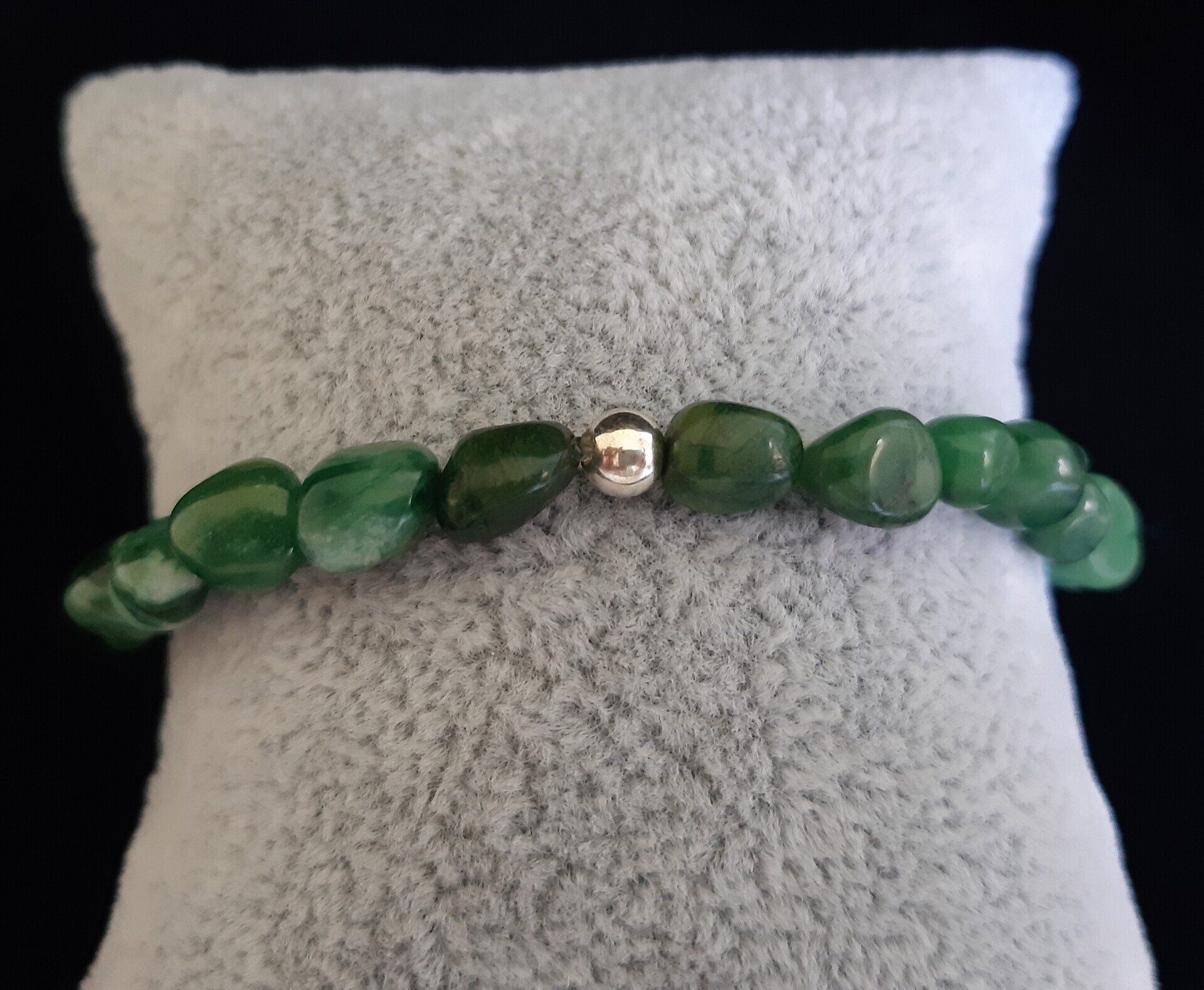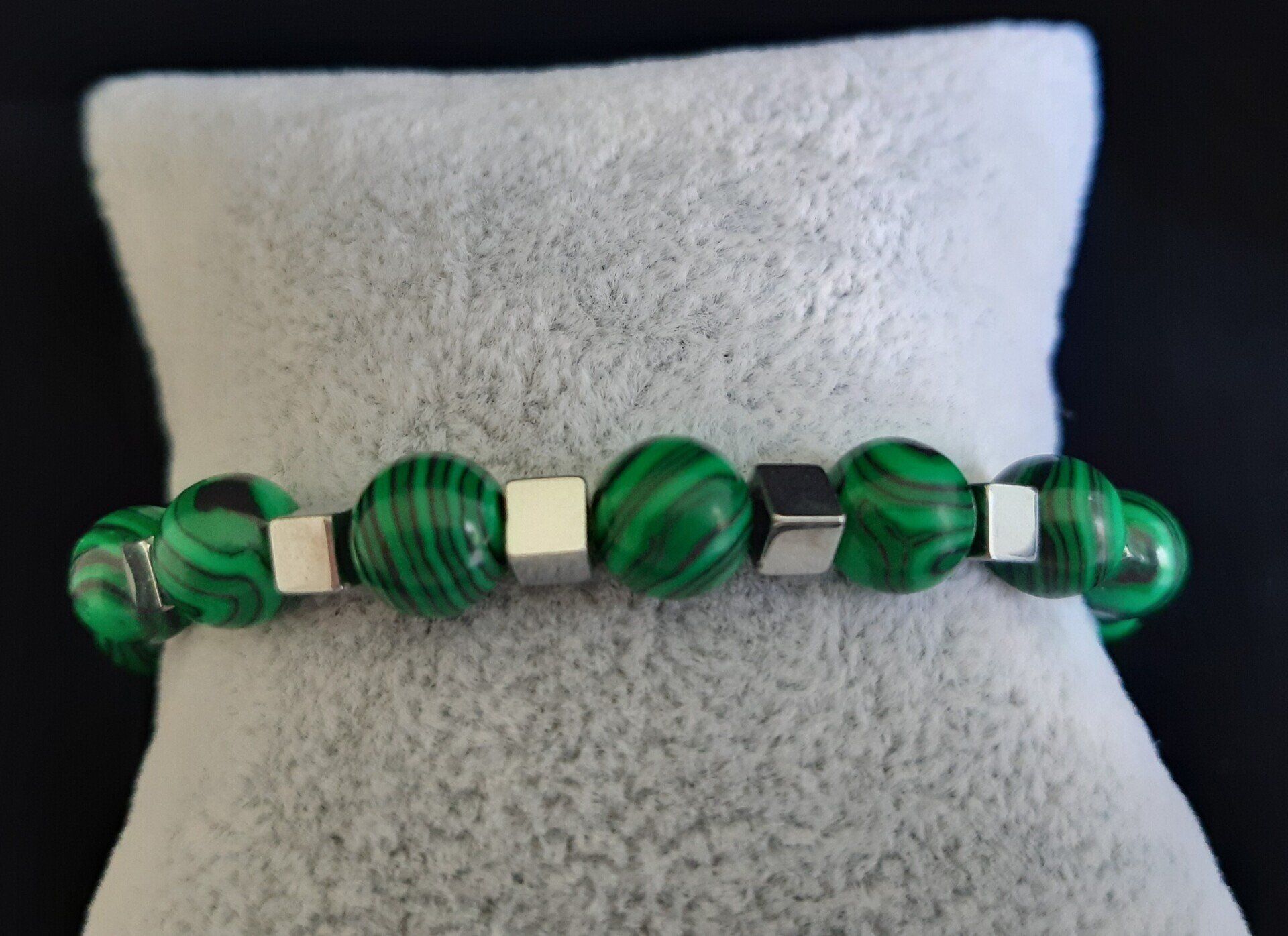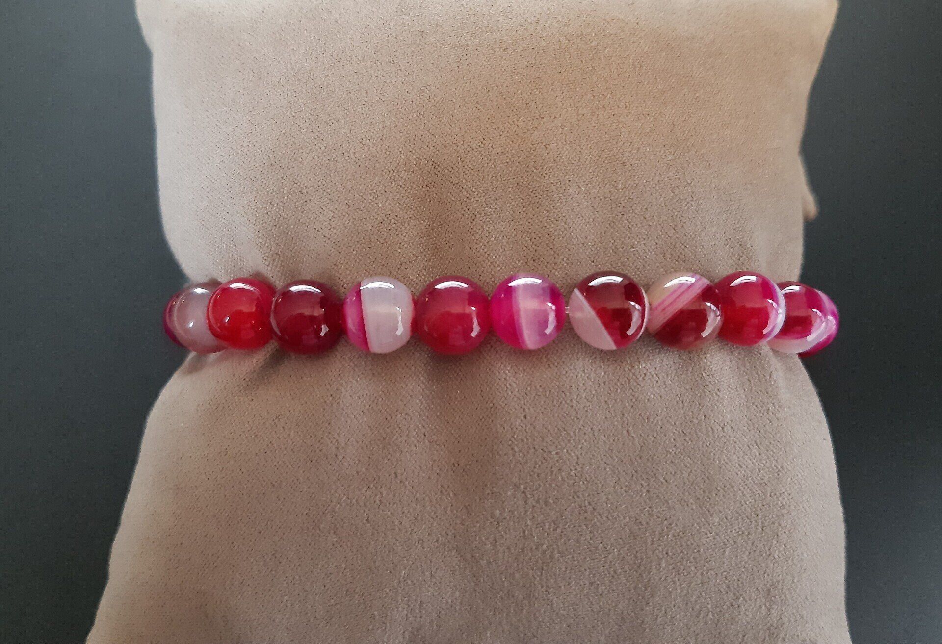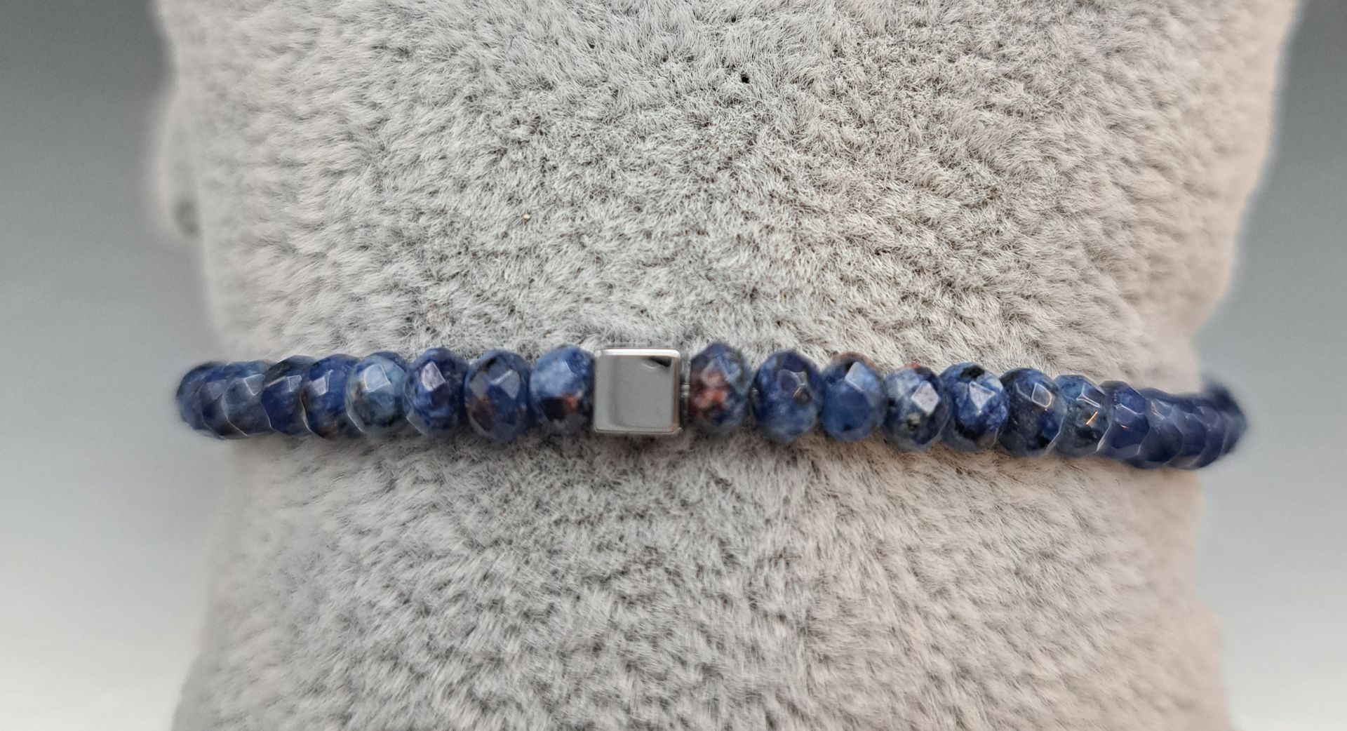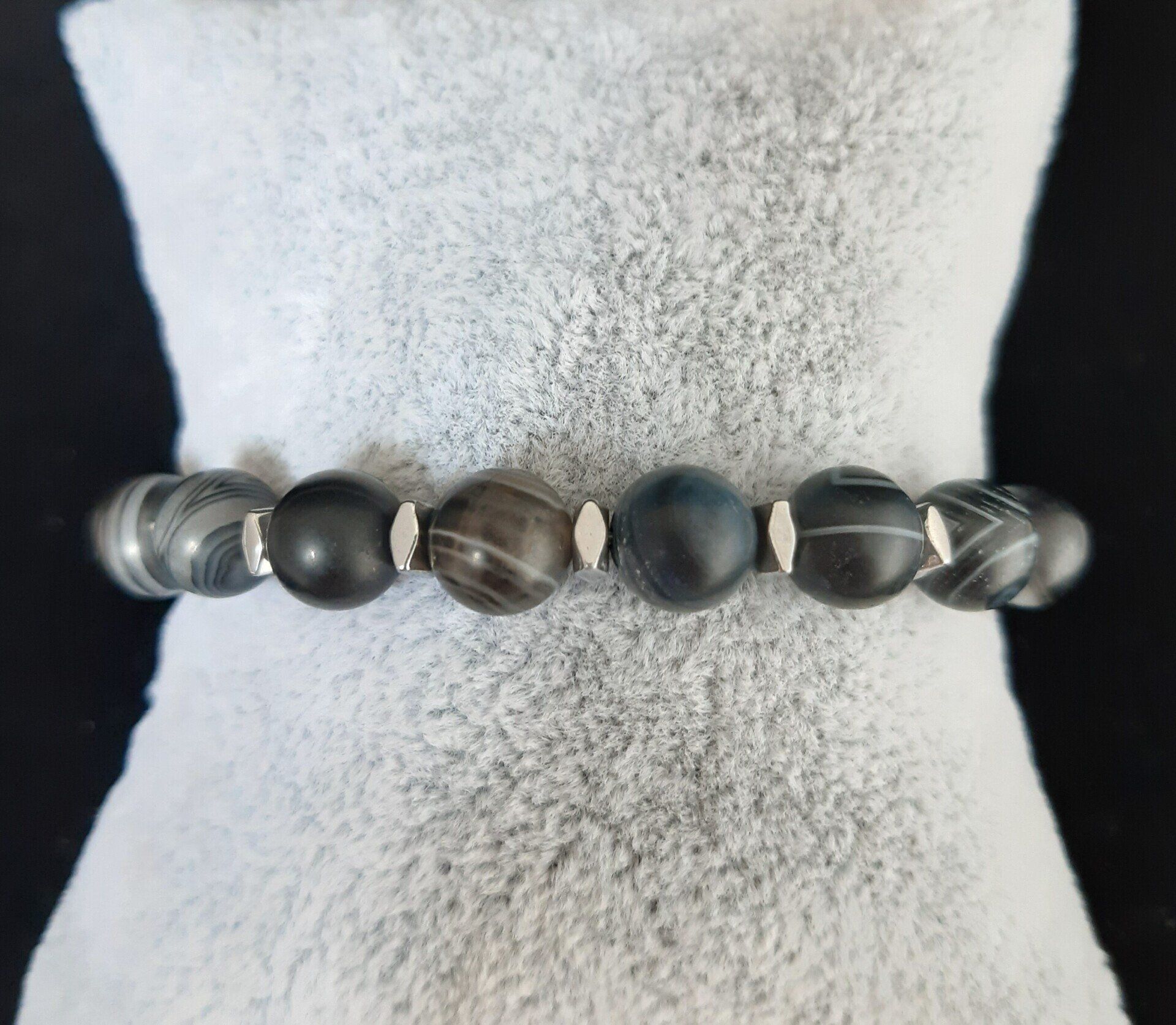 werden zumeist auf elastischem Gummiband aufgezogen, da reguläre Kettenverschlüsse mit einer Hand schwer zu öffnen und zu schließen sind. Das elastische Gummiband leiert kaum aus, sofern man es pfleglich behandelt. Armbänder können aber auf Wunsch auch auf normalen Schmuckdraht gezogen und mit Magnetverschlüssen oder sogenannten Knebelverschlüssen versehen werden. Manche Armbänder sind aus 925 Sterlingsilber und umfassen schöne Edelsteine.