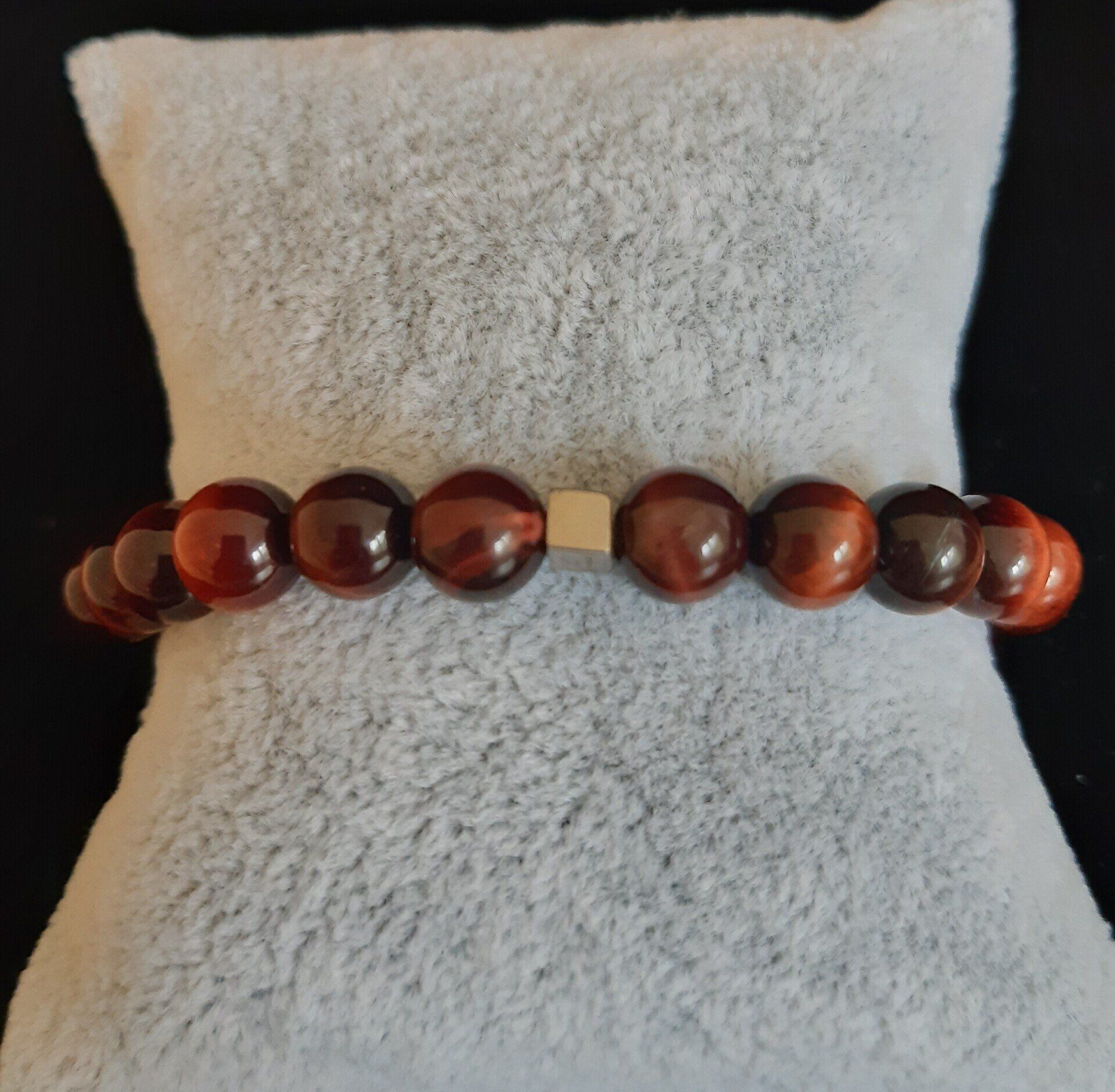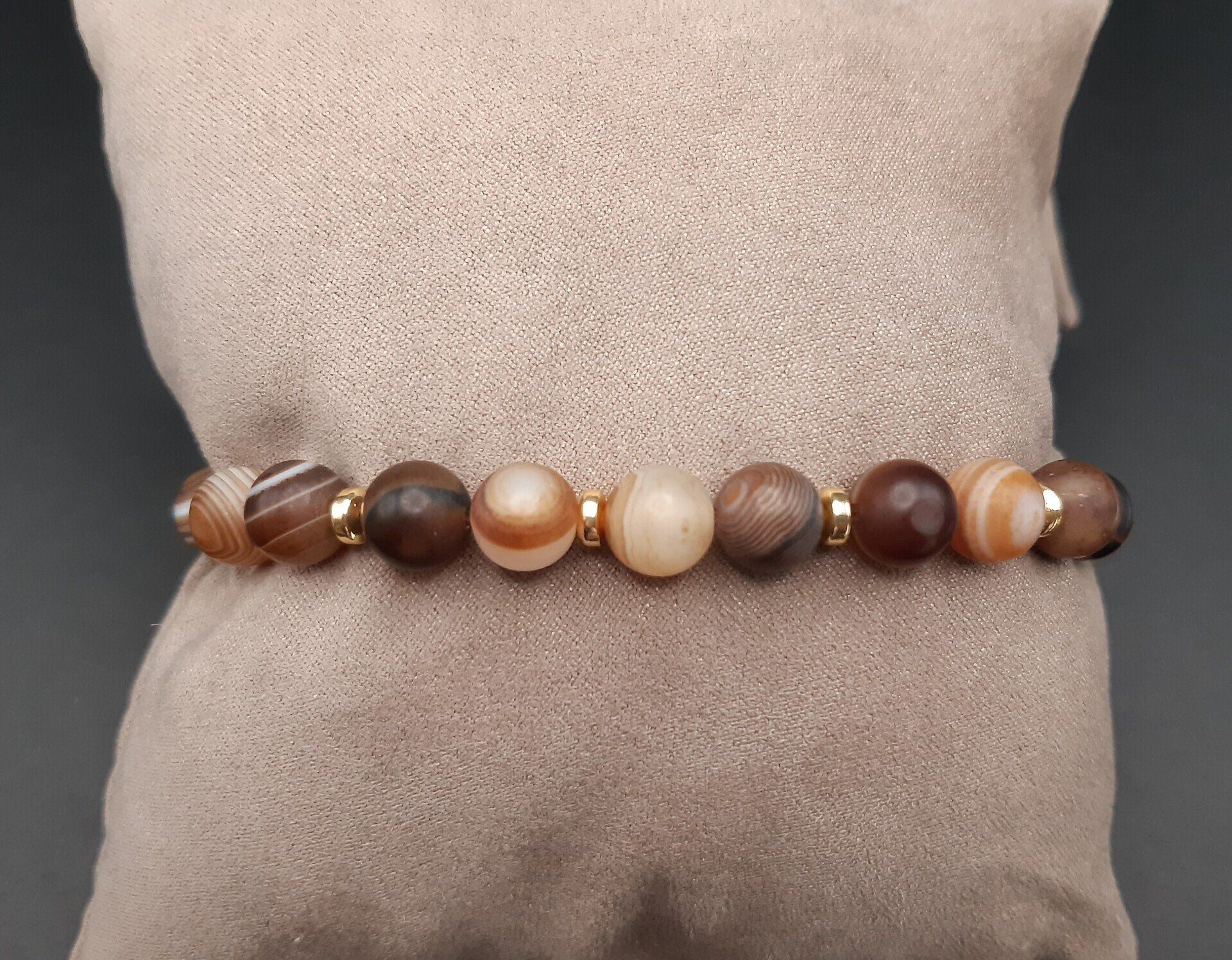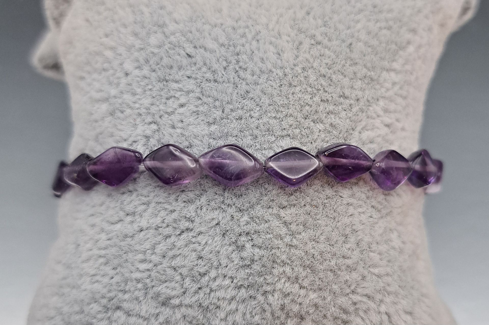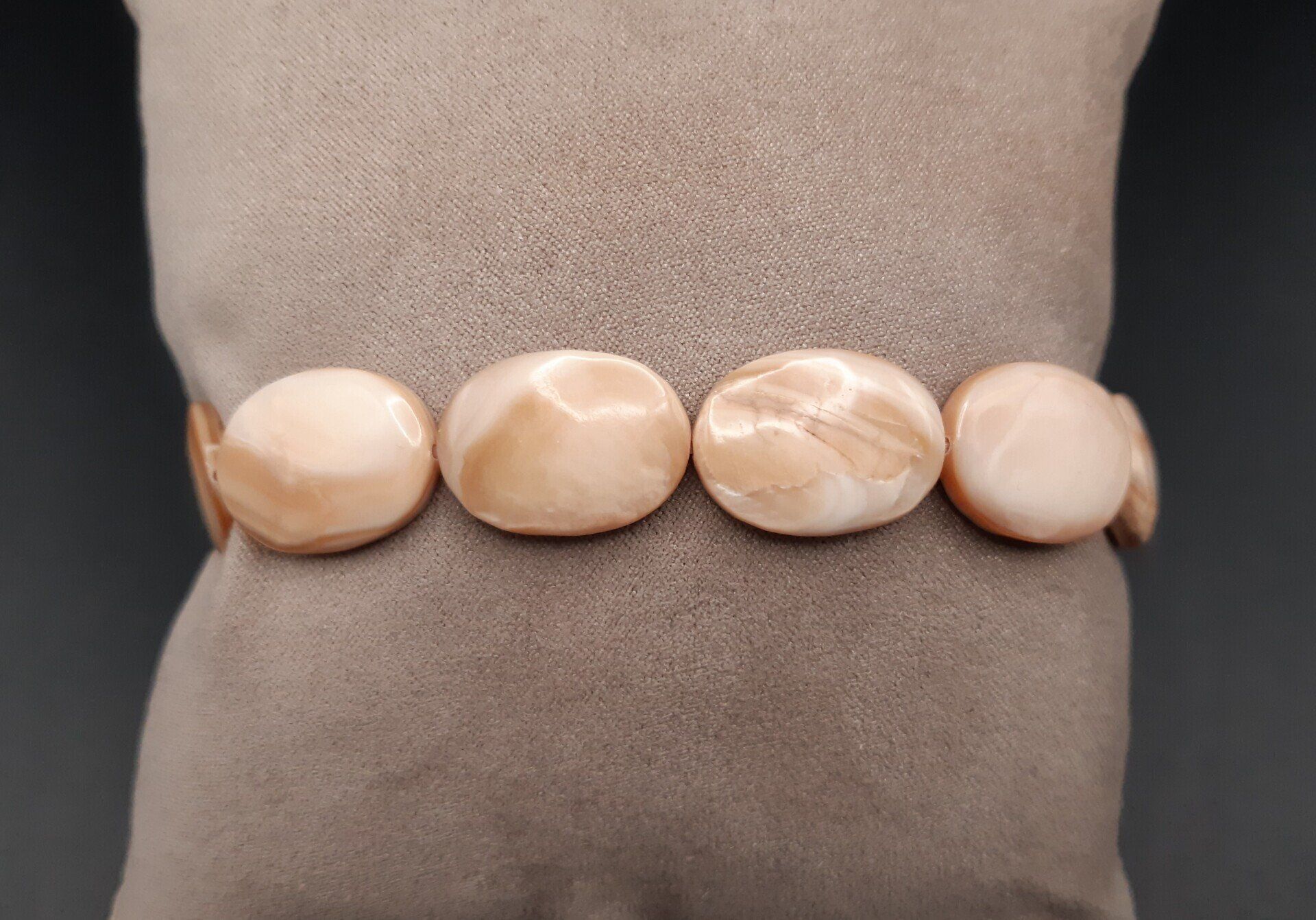 werden zumeist auf elastischem Gummiband aufgezogen, da reguläre Kettenverschlüsse mit einer Hand schwer zu öffnen und zu schließen sind. Das elastische Gummiband leiert kaum aus, sofern man es pfleglich behandelt. Armbänder können aber auf Wunsch auch auf normalen Schmuckdraht gezogen und mit Magnetverschlüssen oder sogenannten Knebelverschlüssen versehen werden. Manche Armbänder sind aus 925 Sterlingsilber und umfassen schöne Edelsteine.