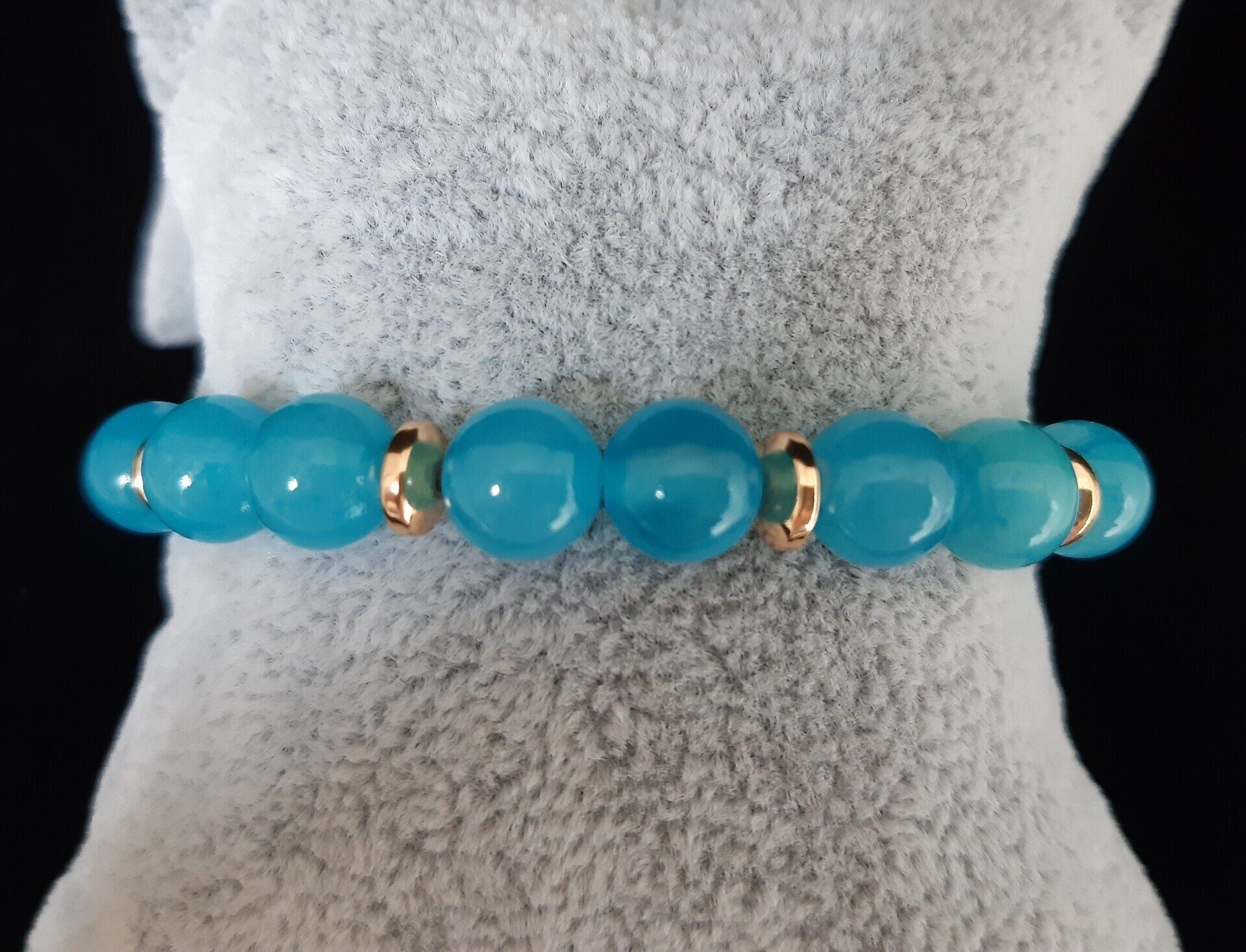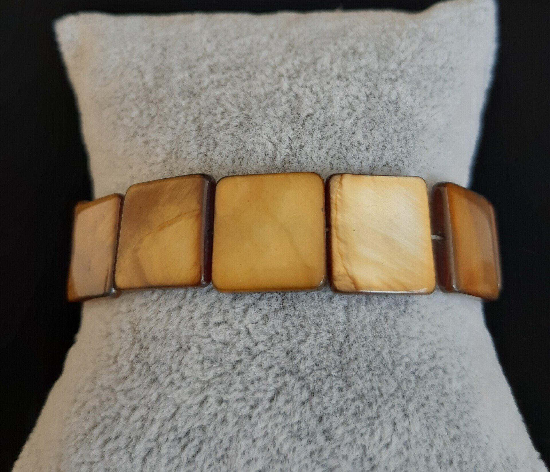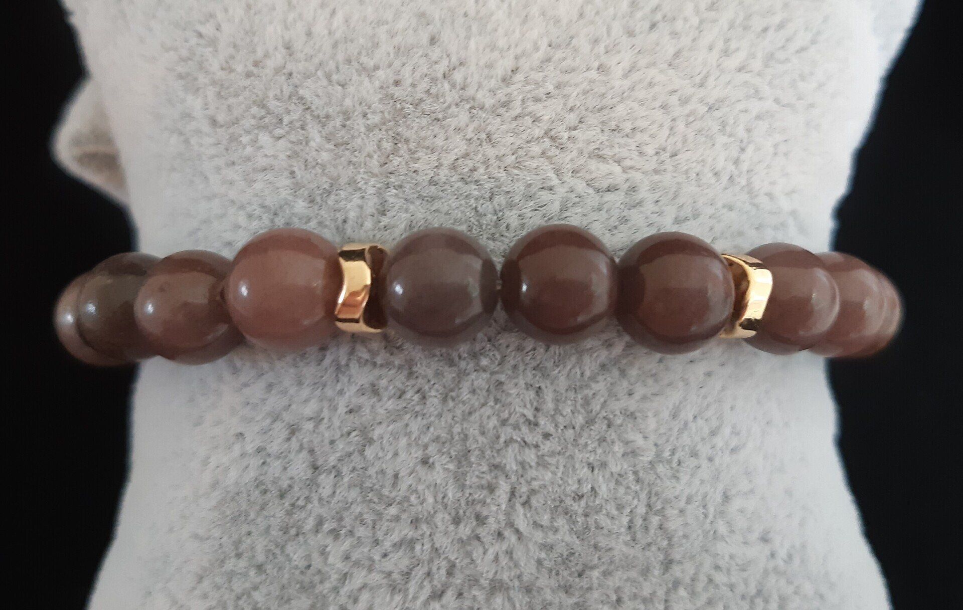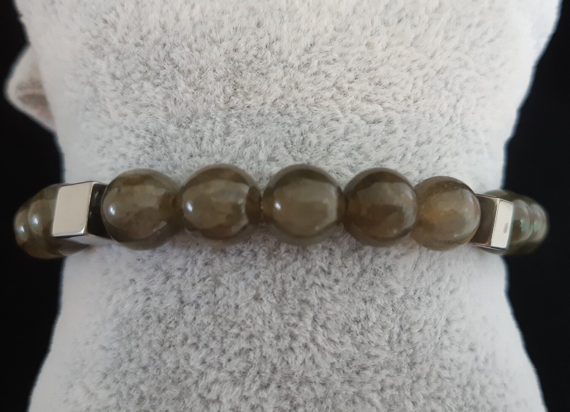 werden zumeist auf elastischem Gummiband aufgezogen, da reguläre Kettenverschlüsse mit einer Hand schwer zu öffnen und zu schließen sind. Das elastische Gummiband leiert kaum aus, sofern man es pfleglich behandelt. Armbänder können aber auf Wunsch auch auf normalen Schmuckdraht gezogen und mit Magnetverschlüssen oder sogenannten Knebelverschlüssen versehen werden. Manche Armbänder sind aus 925 Sterlingsilber und umfassen schöne Edelsteine.