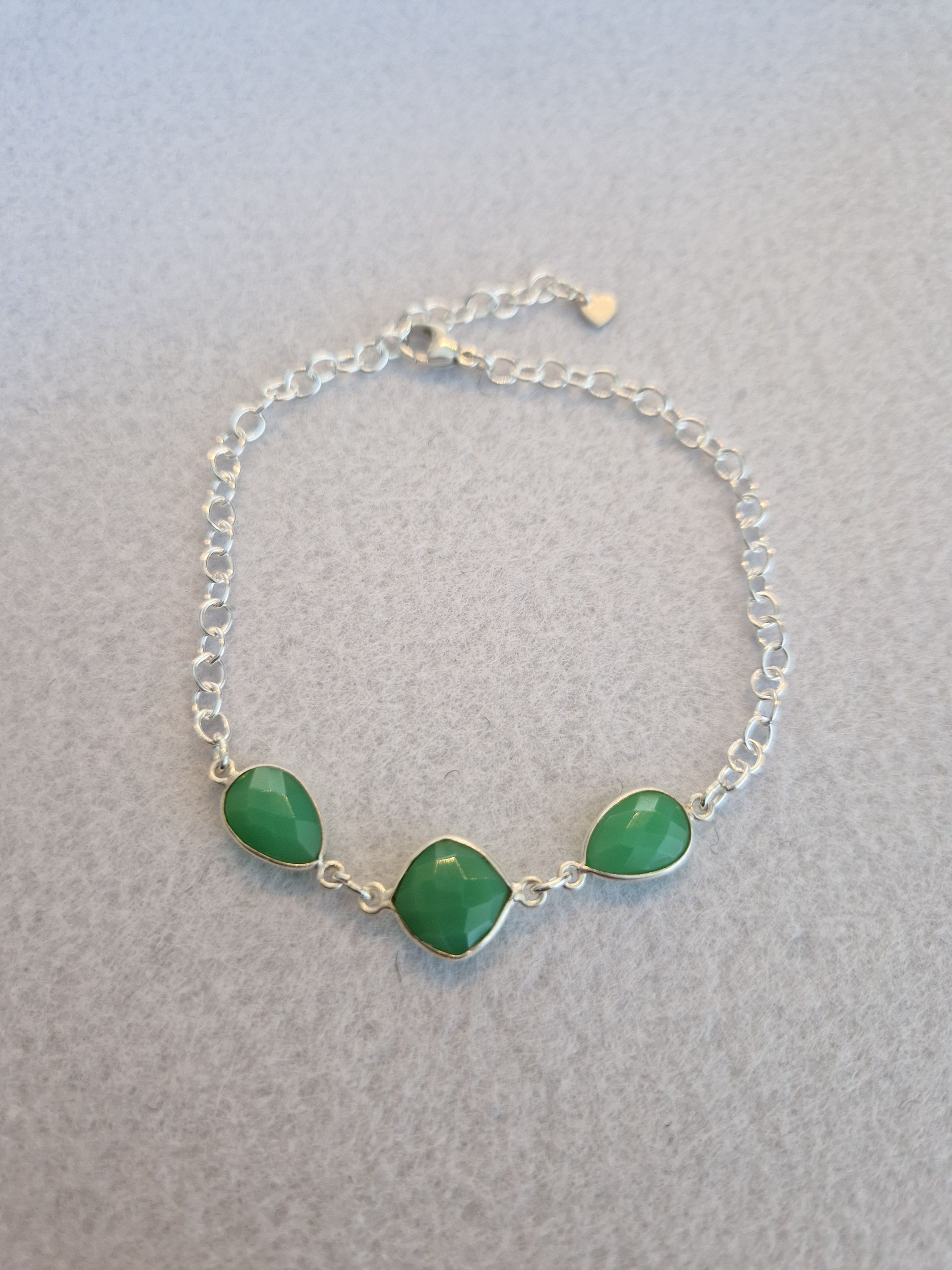 Armband aus 925 Silber mit wunderschön facettierten grünen Onyxen ( ca 13mm), die in 925 Silber gefasst sind.