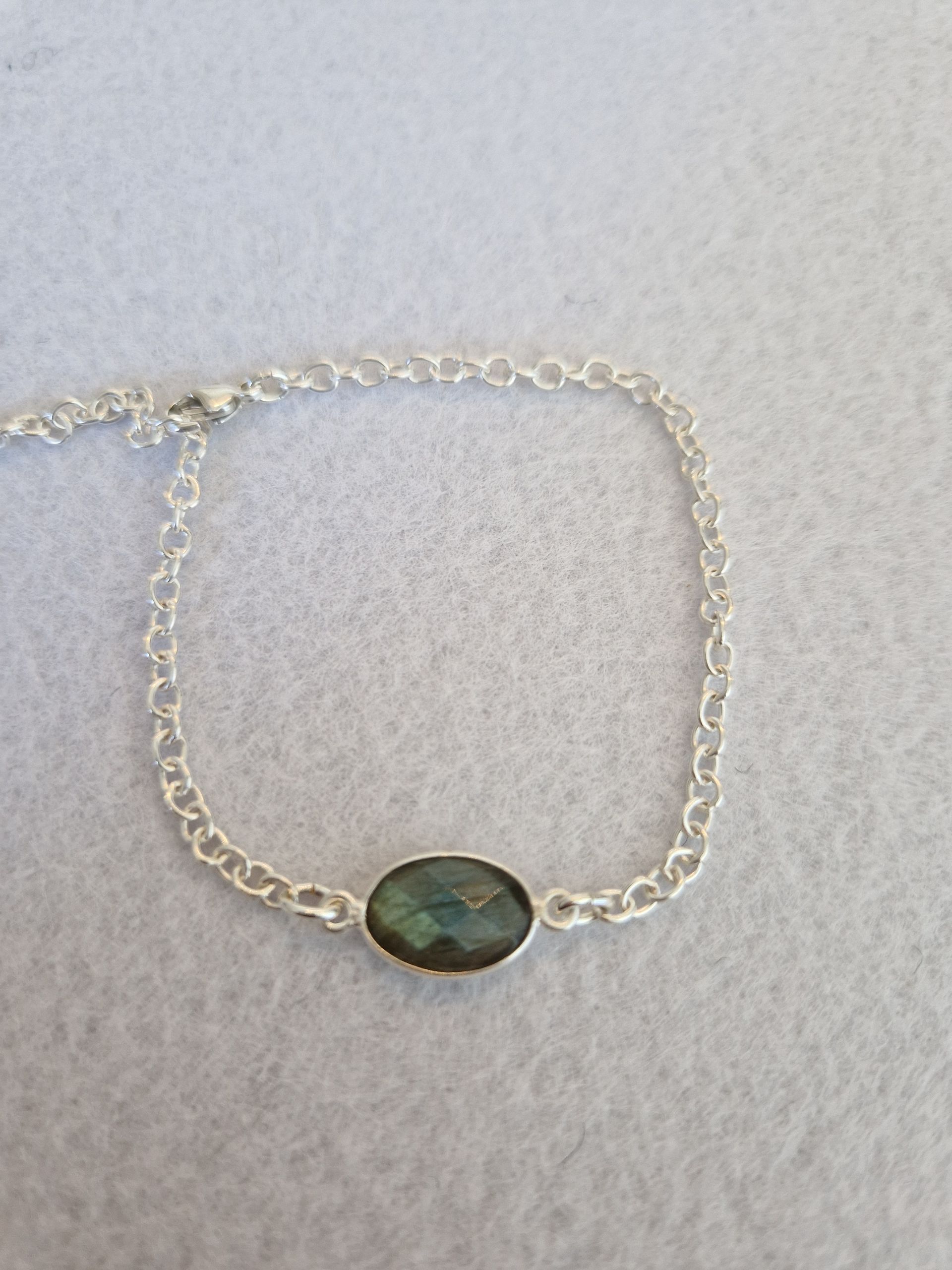 Armband aus 925 Silber mit einem wunderschön facettierten ovalen Labradorit (9x13), der in 925 Silber gefasst ist.