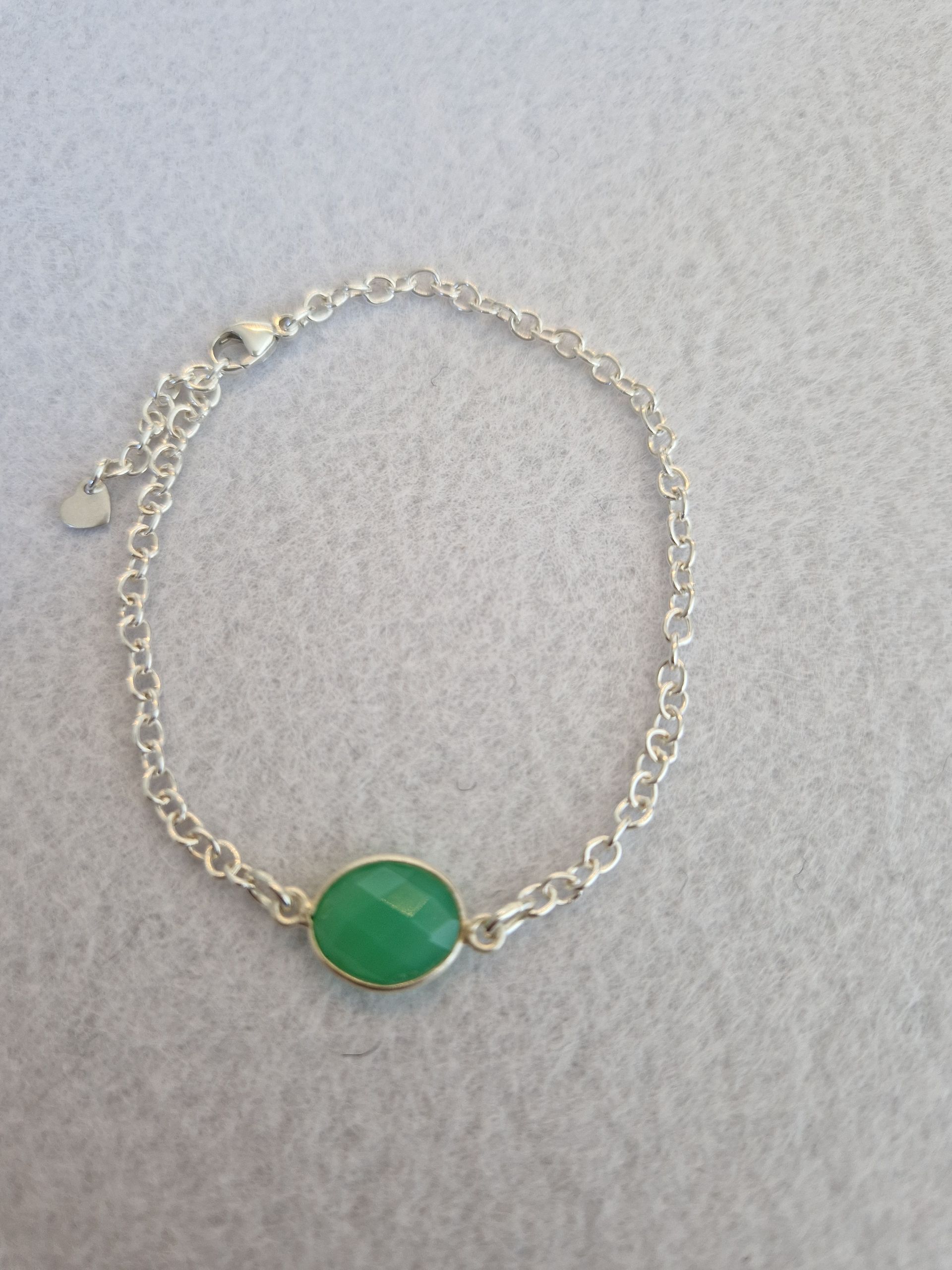 Armband aus 925 Silber mit einem wunderschön facettierten ovalen grünen Onyx (9x13), der in 925 Silber gefasst ist.