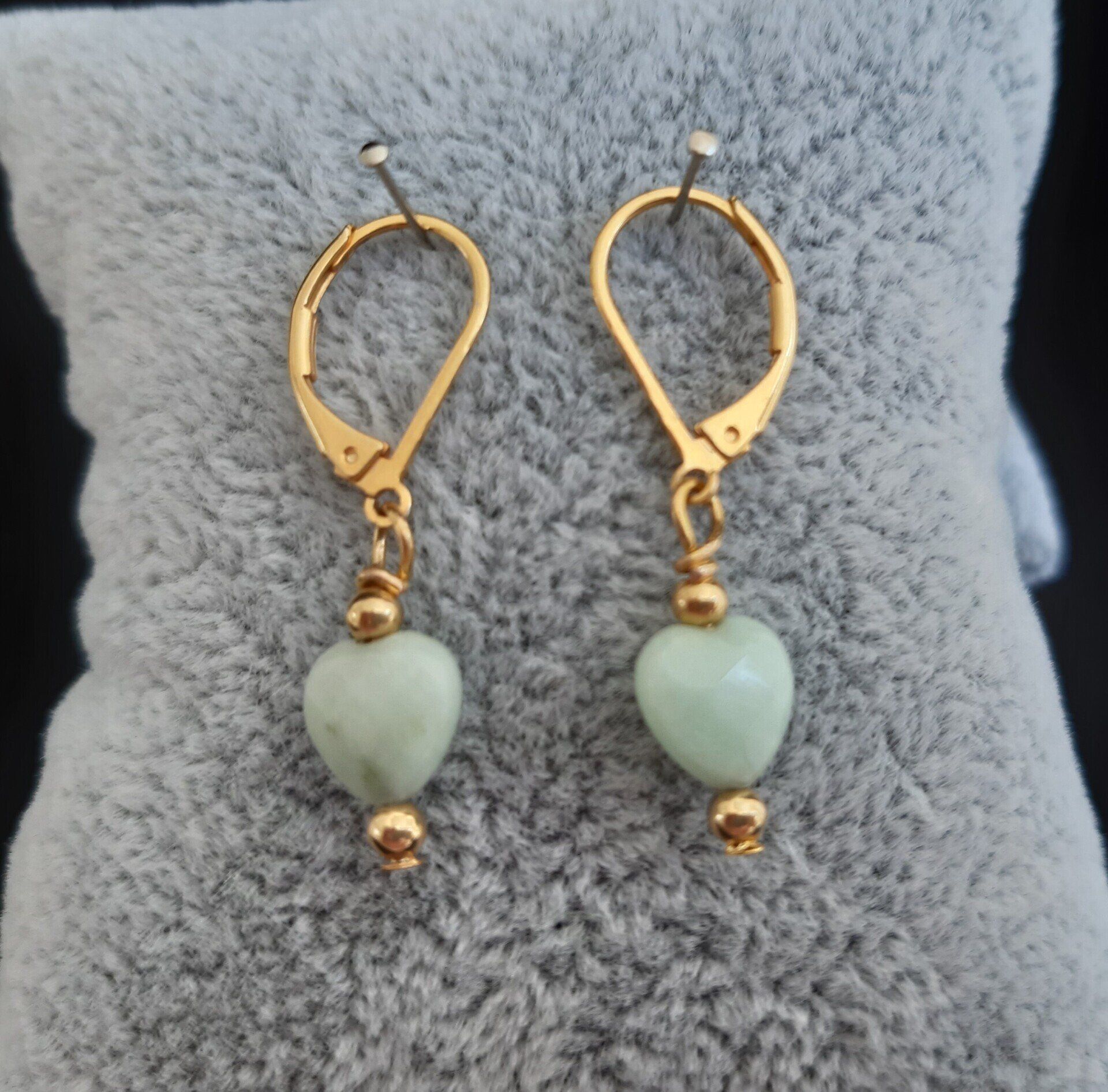 Amazonit- Herz (8mm)mit vergoldeter Perle und vergoldeter Klappbrisur
