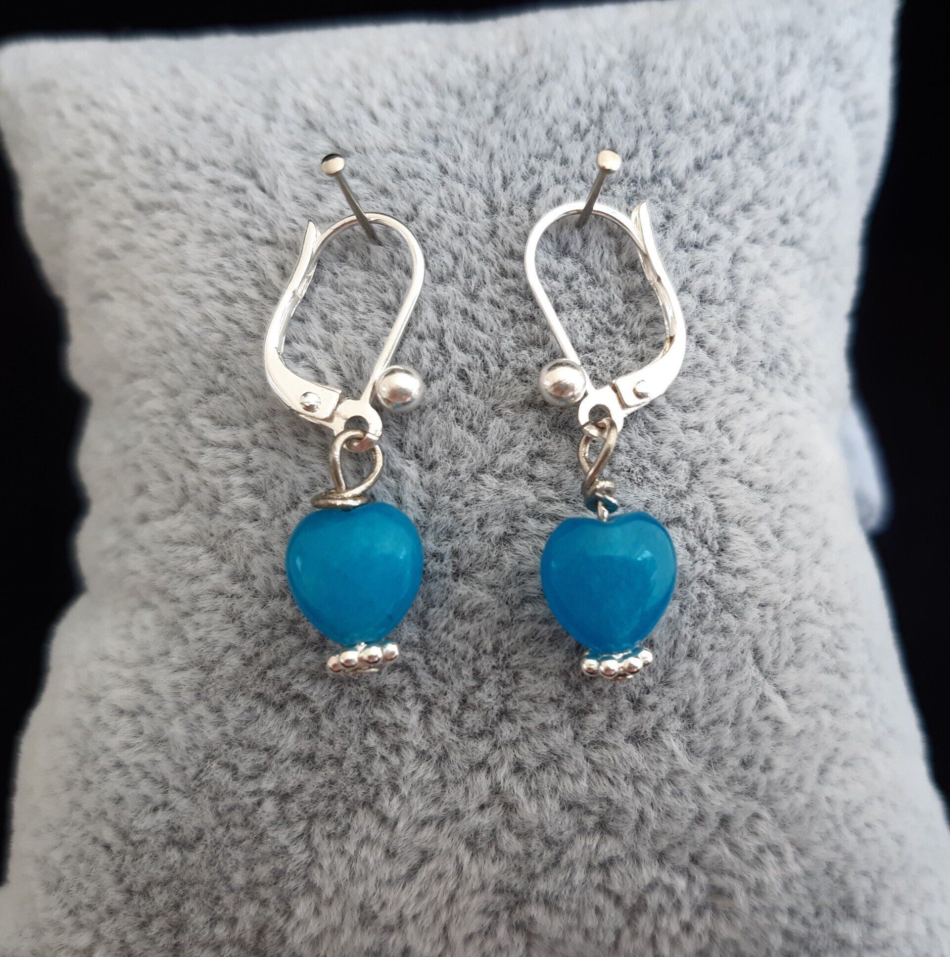 Jade-Herz (8mm)mit versilberter Scheibe und versilberter Klappbrisur