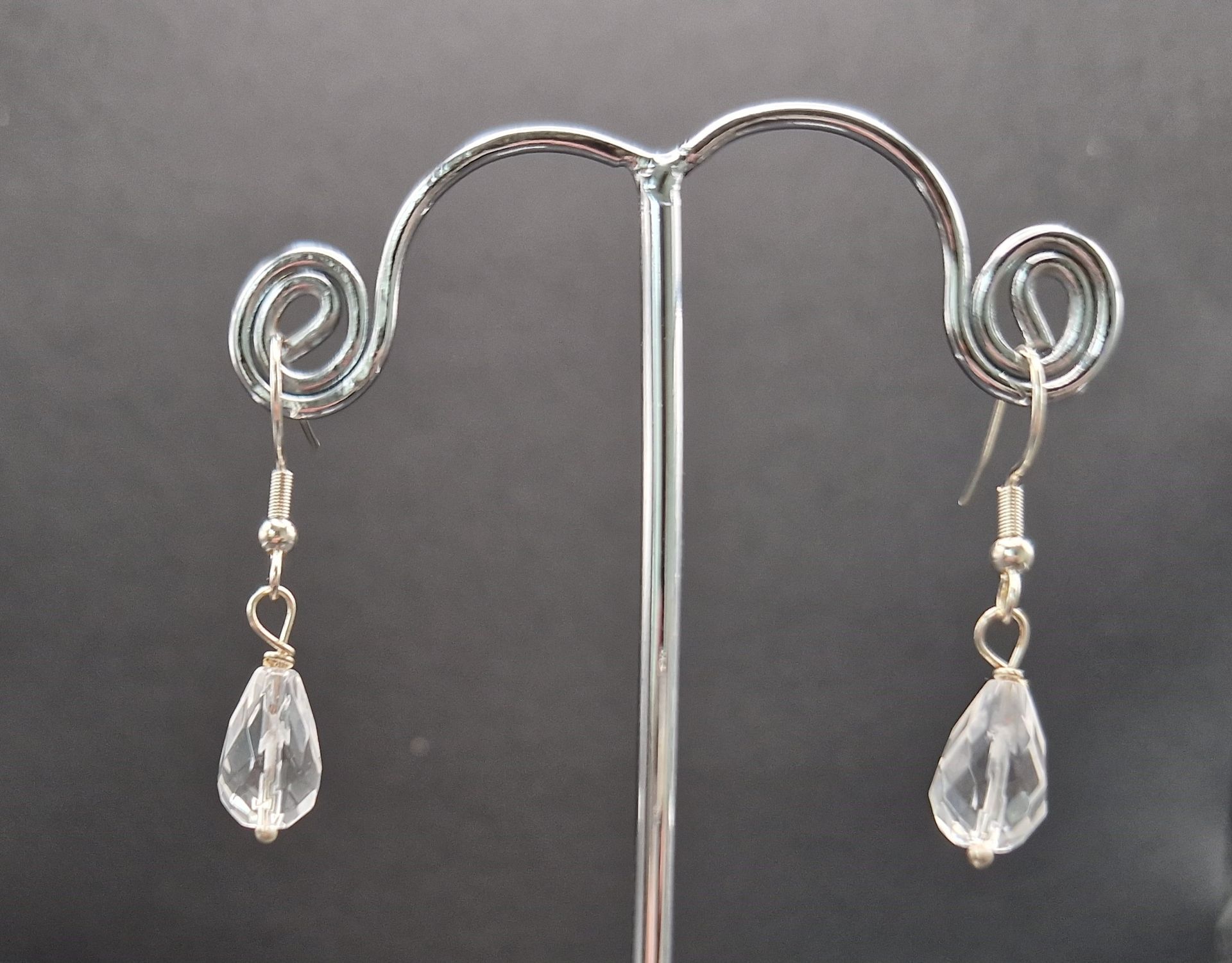 Bergkristall-Tropfen mit versilberten Ohrhängern