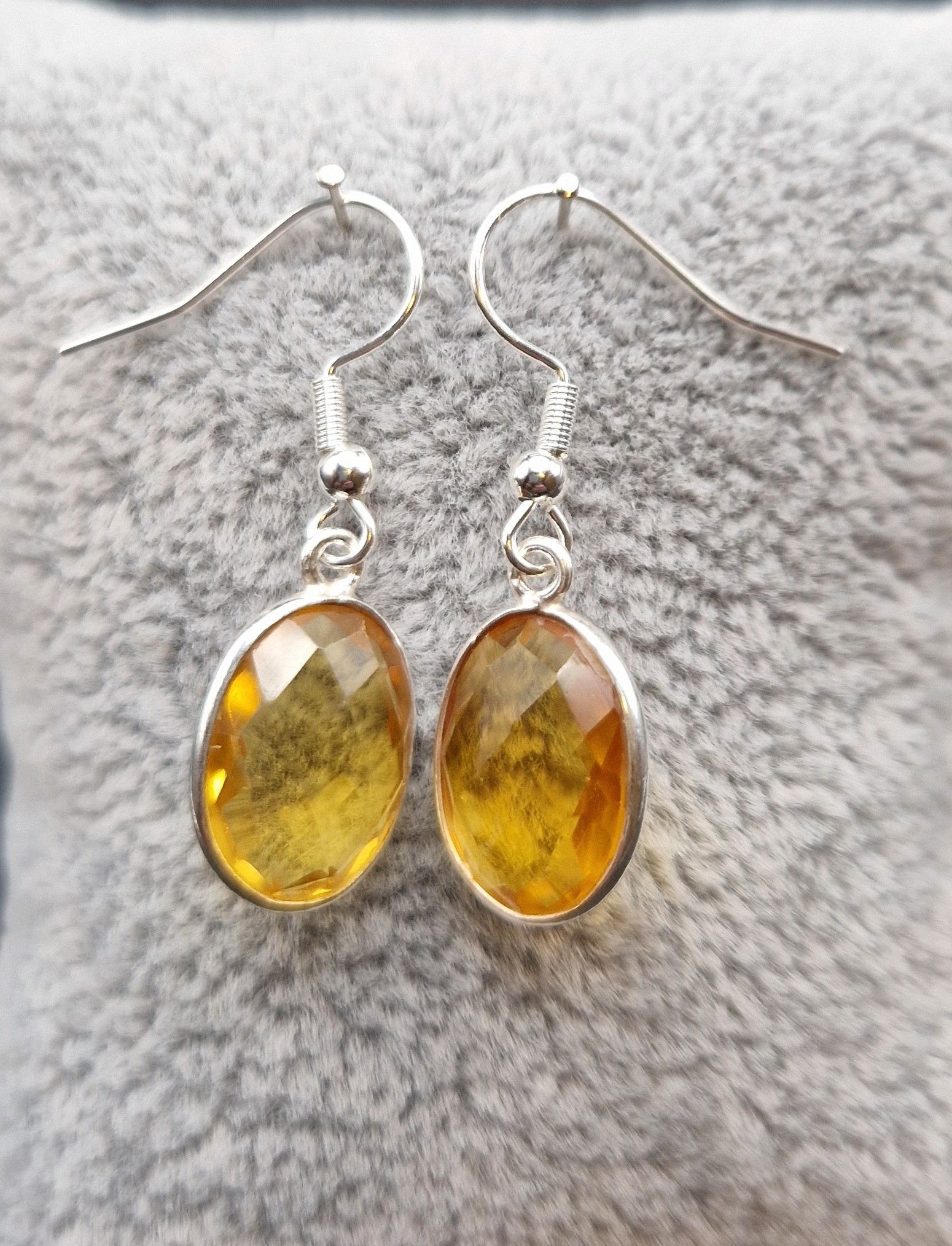 Citrin-Oval in 925 Sterlingsilber gefasst 15 mm, versilberte Ohrhänger