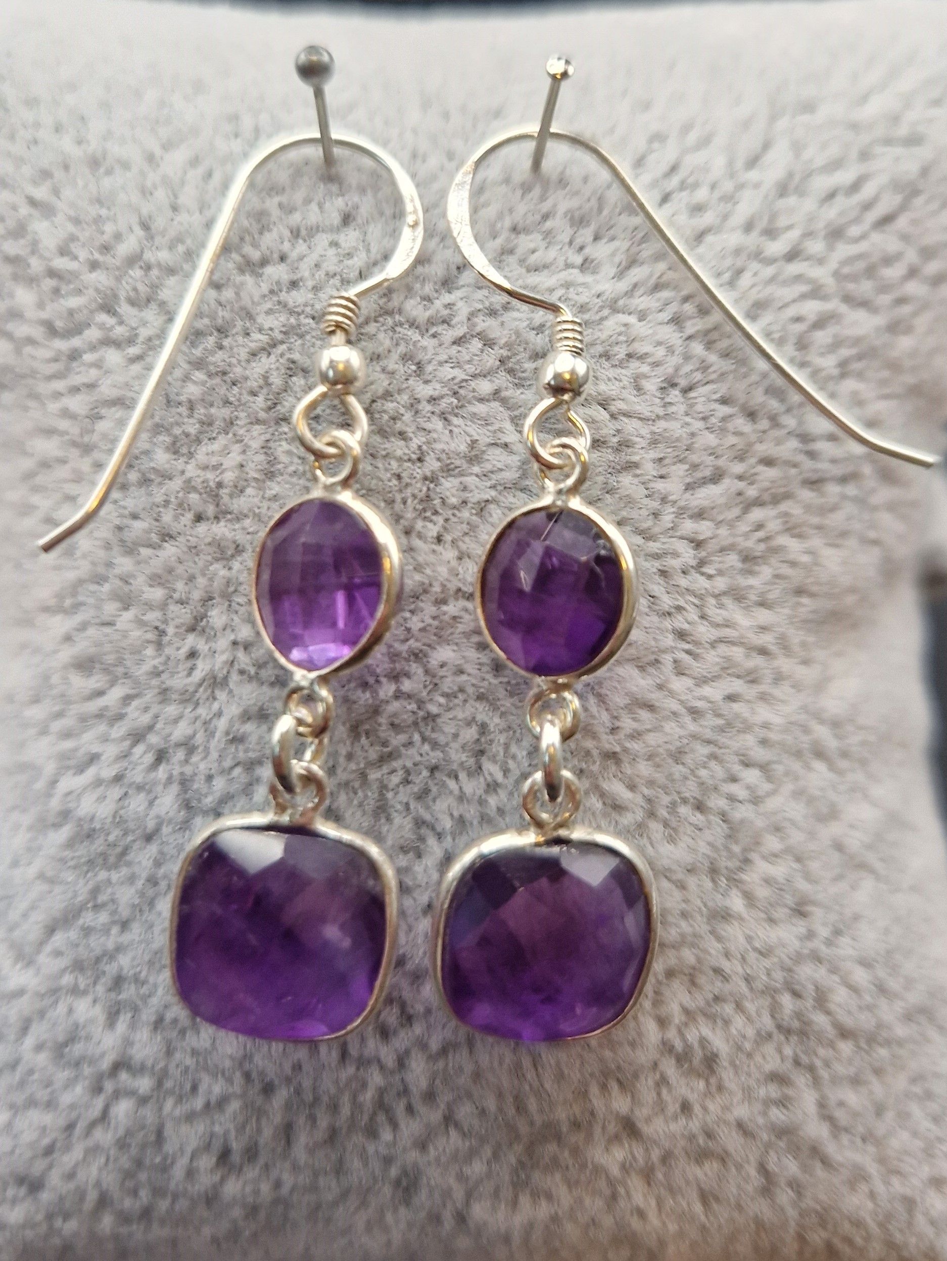 Amethyst- Quadrat (11mm) und rund (9mm) beide in 925 Sterlingsilber gefasst, 925 Silber Ohrhänger