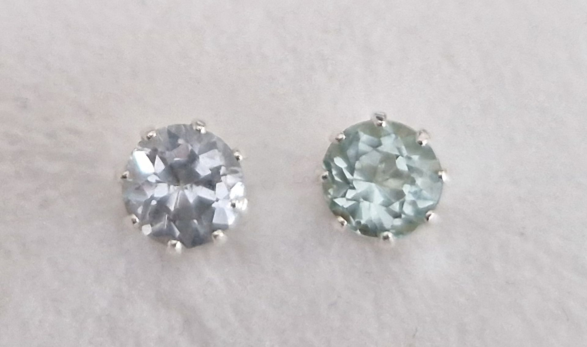 Ohrstecker 925 Sterlingsilber mit wunderschön facettierten runden synthetischen Spinellen in aquamarinfarbe (6 und 7mm)