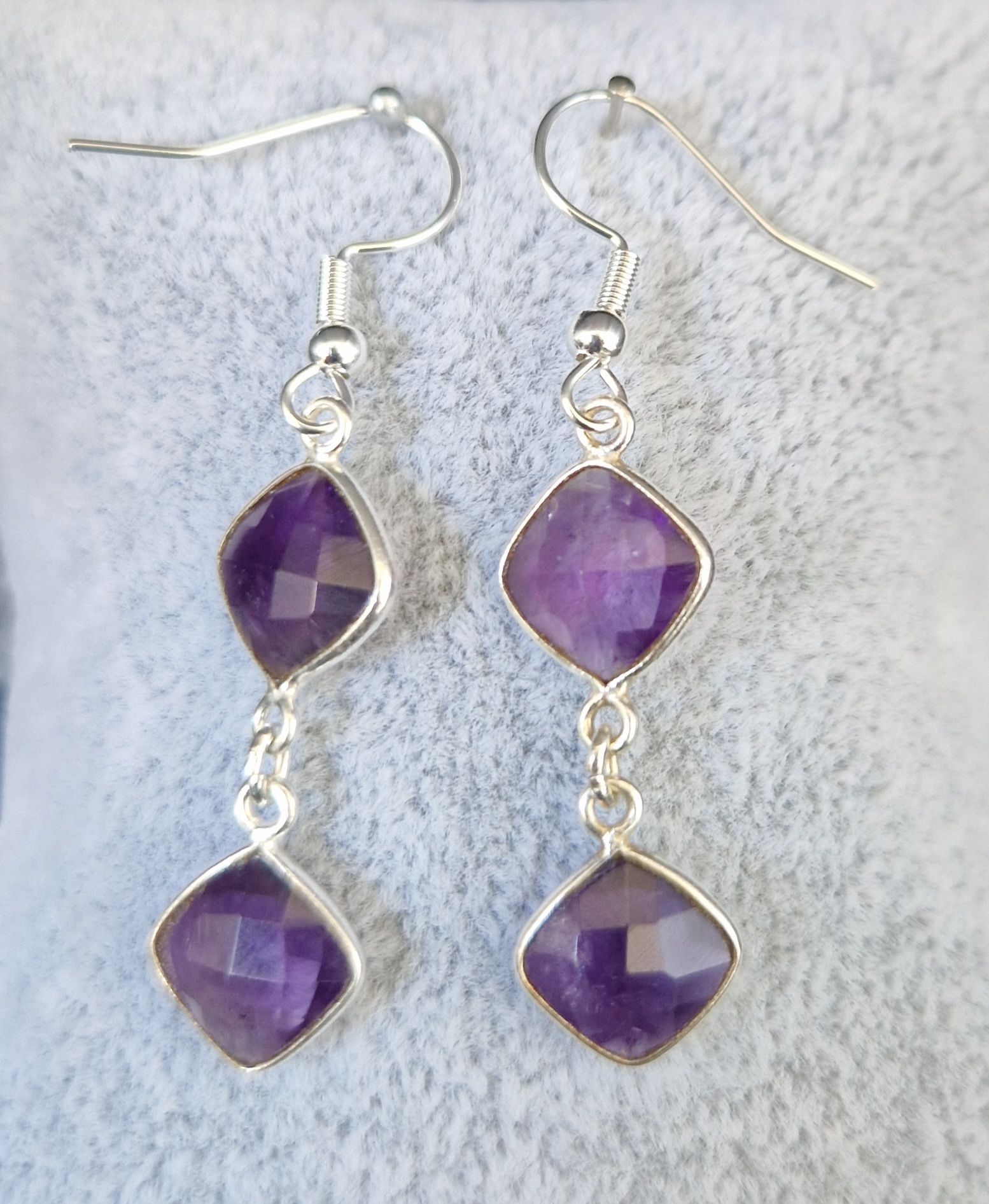 Amethyst- Quadrate/ Rauten (11mm) in 925 Sterlingsilber gefasst, 925 Silber Ohrhänger
