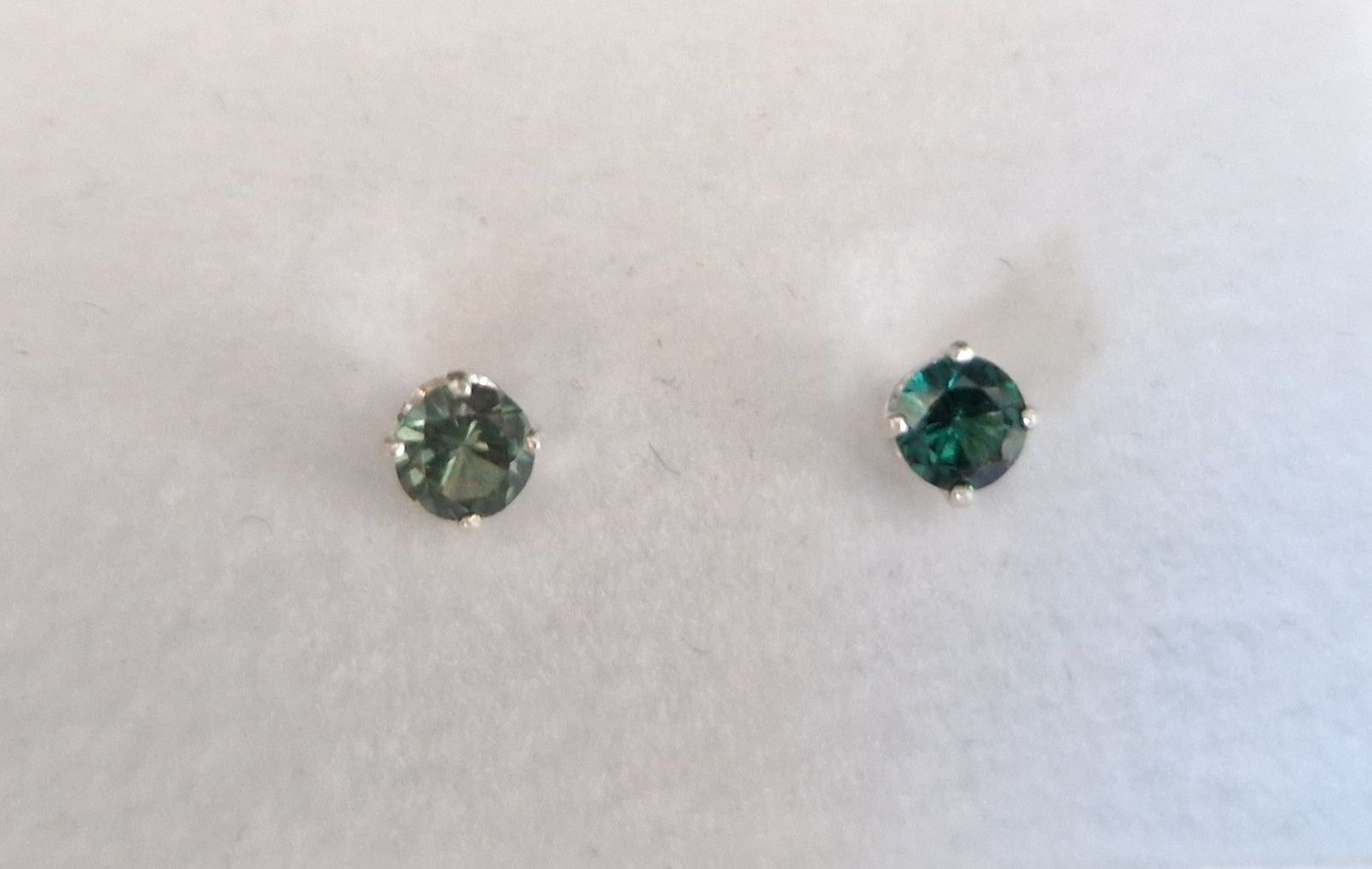 Ohrstecker 925 Sterlingsilber mit wunderschön facettierten runden synthetischen Spinellen in turmalinfarbe (4mm)