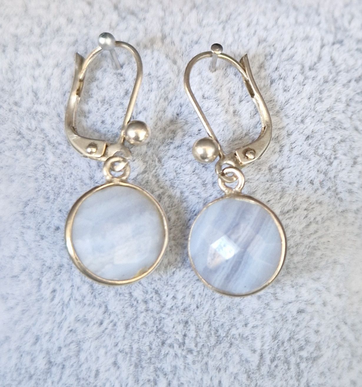 Sehr kleiner, hellblauer Quarzanhänger in 925 Sterlingsilber gefasst 7mm, Ohrstecker versilbert