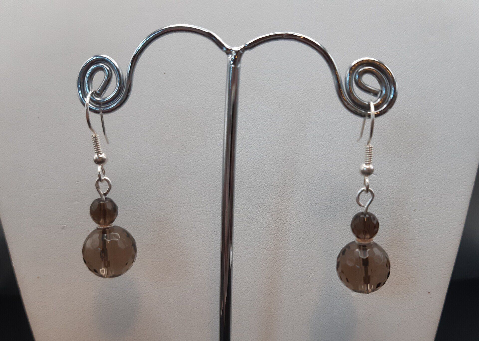Facettierte Rauchquarz-Kugeln mit einer Zwischenscheibe aus 925 Silber und versilberten Ohrhängern