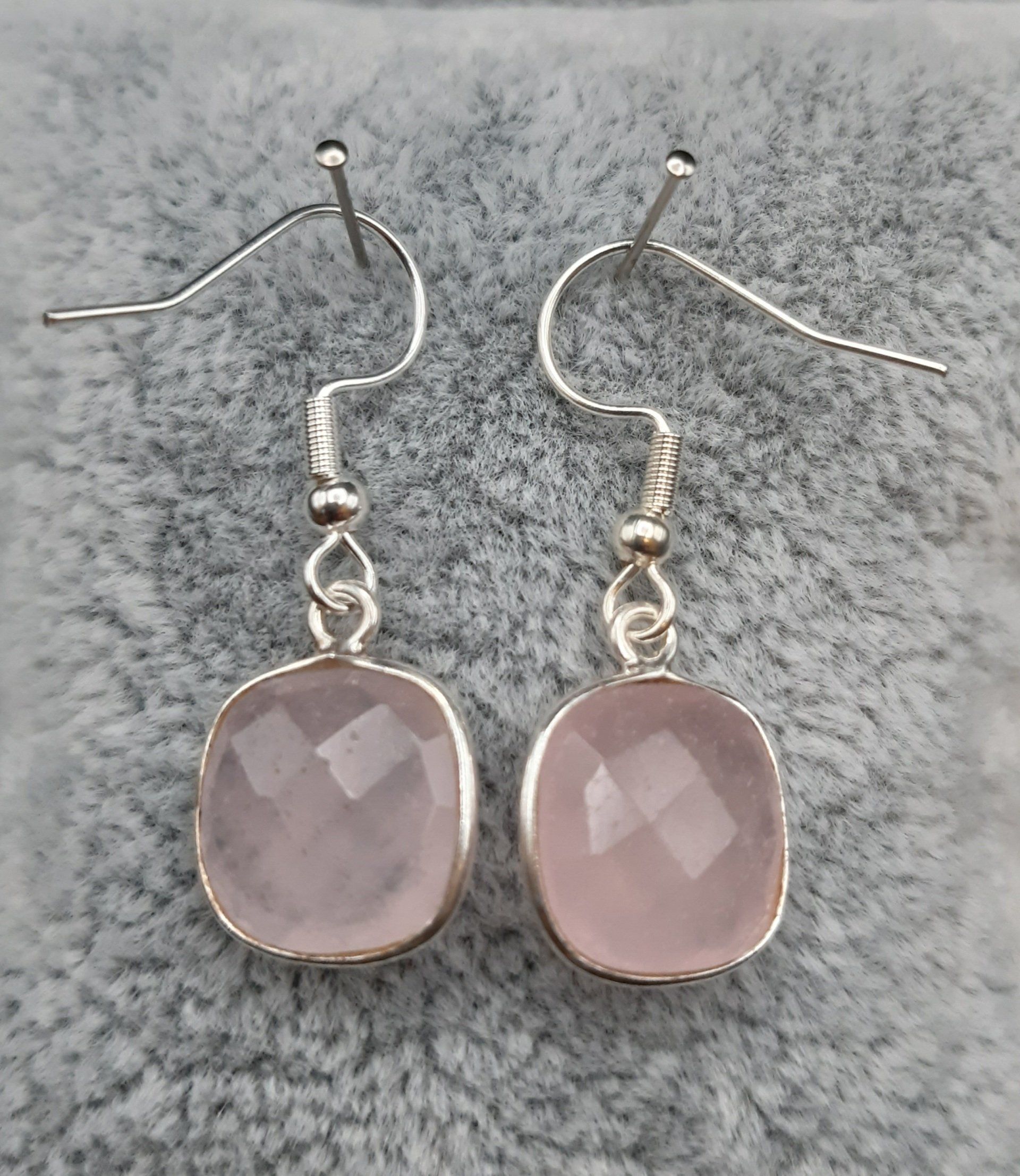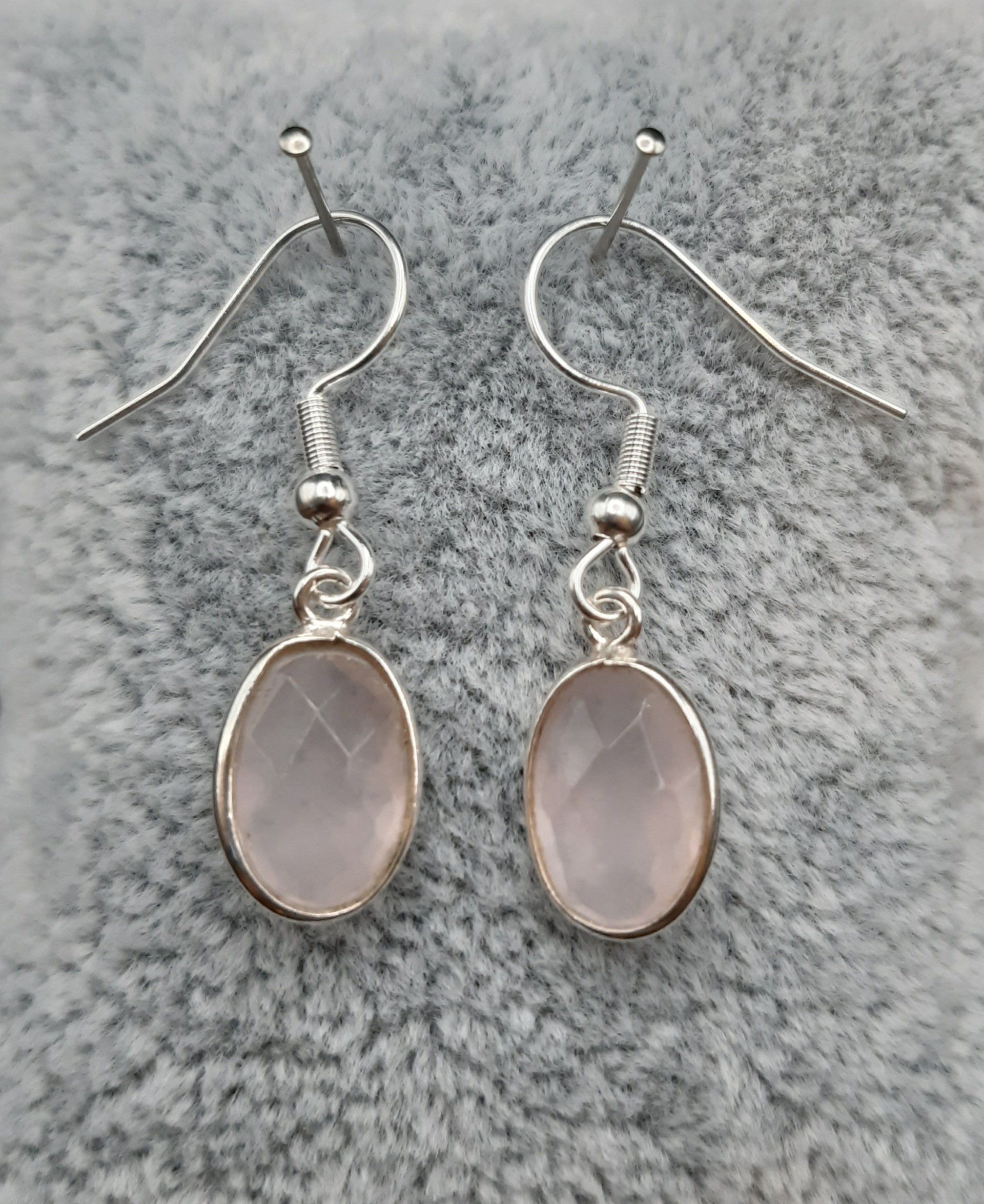 Rosenquarzanhänger rund in 925 Sterlingsilber gefasst 13 mm, Ohrhhänger versilbert