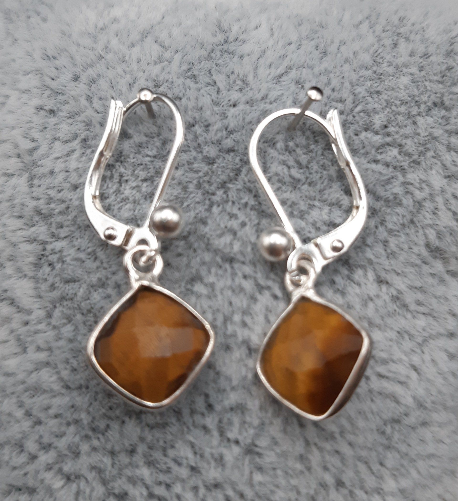 Tigeraugeanhänger qudratisch in 925 Sterlingsilber gefasst 9mm, versilberte Ohrhänger