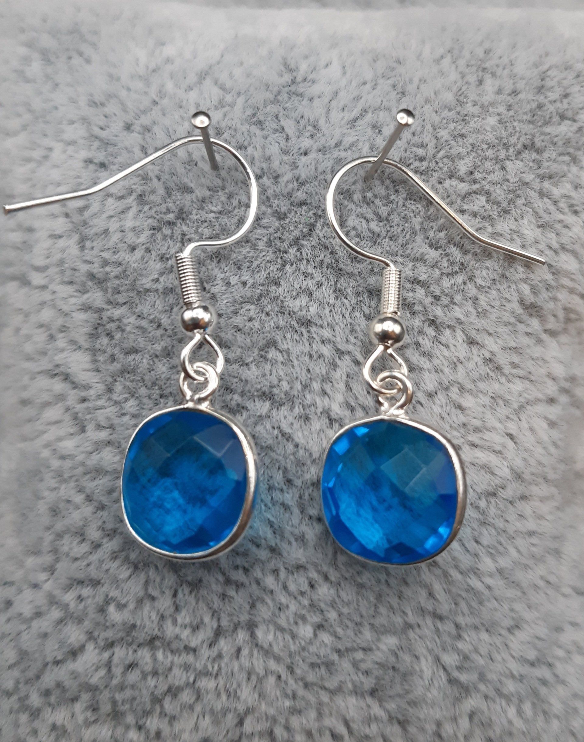 Mittelblauer Quarzanhänger rund in 925 Sterlingsilber gefasst 11 mm, Ohrhhänger versilbert