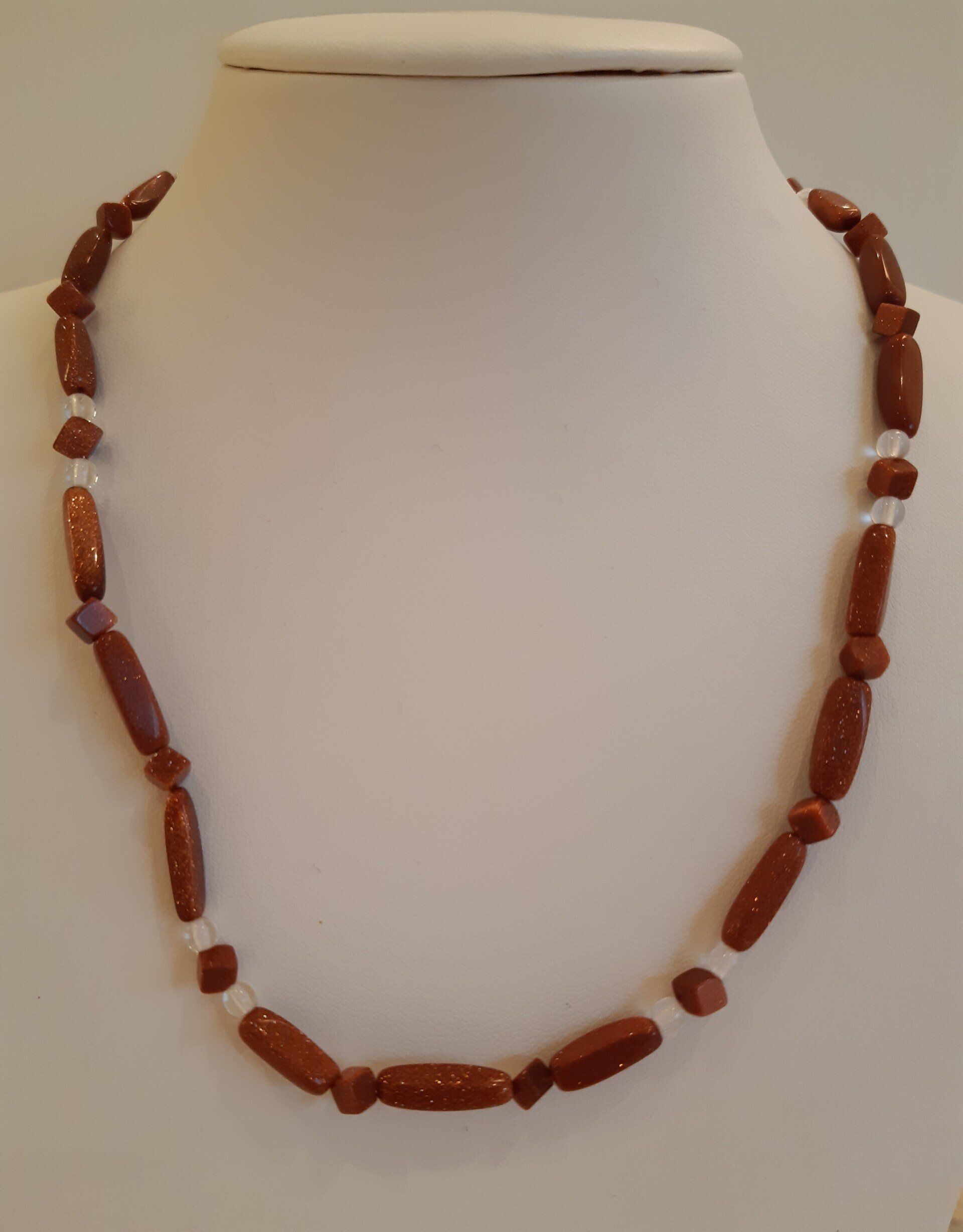 Goldflussperlen in verschiedenen Formen, Glasperlen, Verschluß und Verlängerungskettchen versilbert