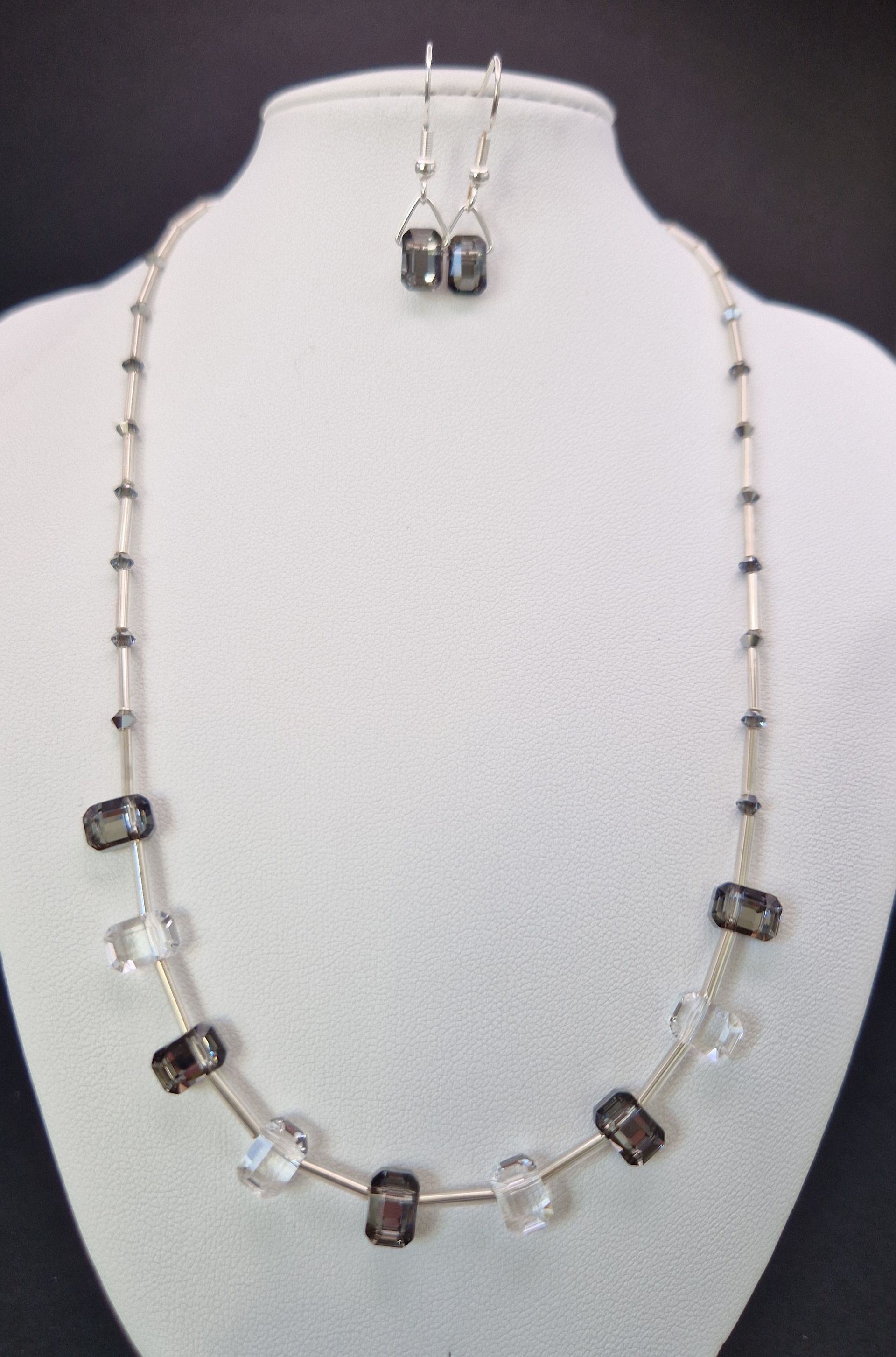 Set bestehend aus einer Kette aus facettierten anthrazit und weißen Swarovski- Rechtecken, anthrazit Swarovski- -Elementen sowie Glasstäbchen